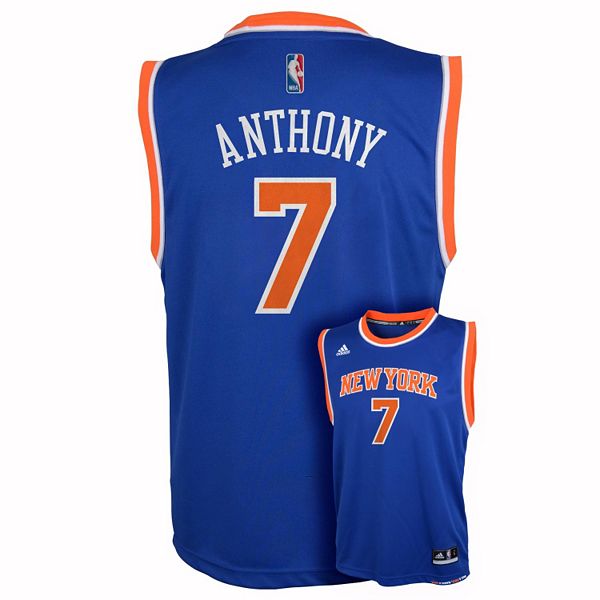 Get on the floor with this replica blue jersey from carmelo anthony, with the number 7 of the new york knicks in the back carmelo anthony. Just ordered a jersey that i'd been after for i've bought a few jerseys from the throwback store and every single one was authentic and in perfect condition.