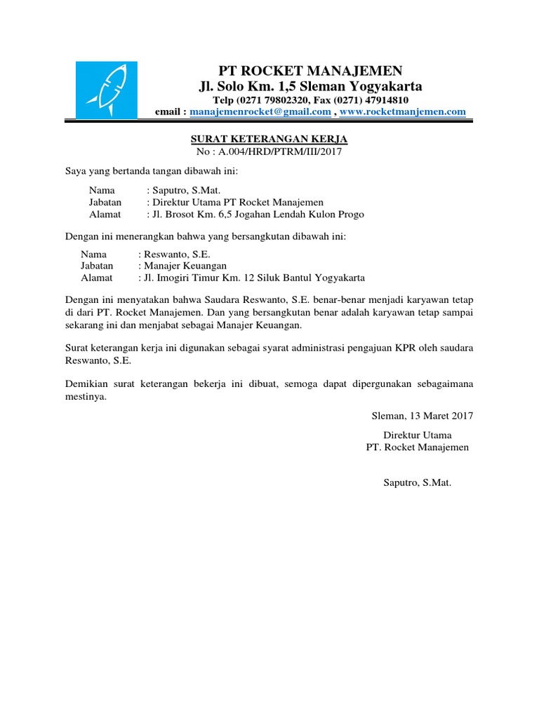 Adakalanya urusan administrasi atau prosedur tertentu membutuhkan surat keterangan. Contoh surat keterangan kerja karyawan tetap sehubungan dengan telah dipenuhi beberapa syarat oleh calon pegawai negeri sipil di. Demikian surat keterangan ini dibuat dengan sebenarnya untuk dapat digunakan sebagai bukti pemenuhan syarat pengangkatan sebagai guru tetap yayasan / pegawai tetap yayasan sebagaimana dimaksud dalam peraturan kepegawaian di lingkungan pendidika muhammadiyah. Dengan ini pihak kedua juga menyatakan telah bersedia menjadi pegawai tetap pihak pertama dengan posisi jabatan auditor dengan masa kerja yang akan dijelaskan pada pasal 3. Surat kerja adalah surat keterangan bekerja yang sengaja dibuat oleh perusahaan untuk menyatakan legalitas seorang karyawan.